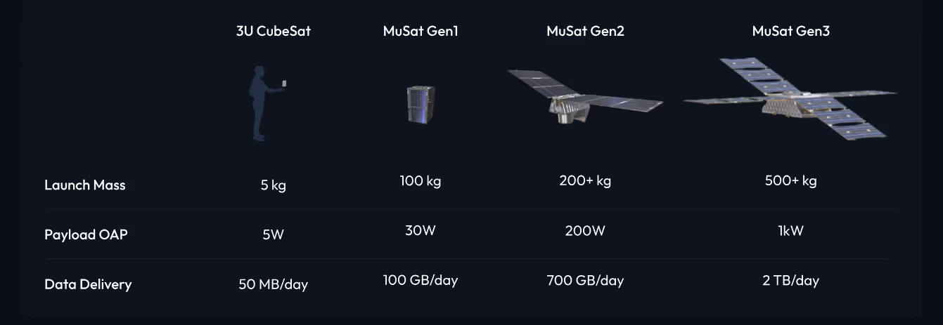 At the hardware layer, MuSat is Muon’s configurable spacecraft platform. It supports missions from 100-kilogram climate monitors to kilowatt-class systems tailored for national security. Its modular design reuses and reconfigures core components across mission classes. This preserves flexibility while maintaining fast build timelines and consistent manufacturing.
