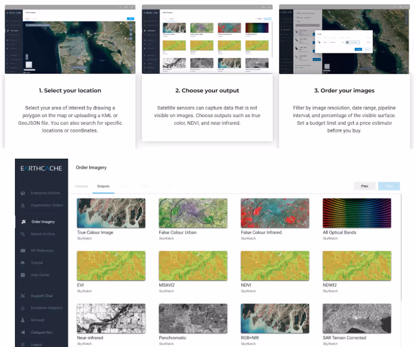 SkyWatch was founded in response to this problem. After winning a NASA Space Apps Challenge in 2014, the founding team—led by CEO James Slifierz, COO Dexter Jagula, and Platform Engineer Roland Singh, began developing what would become one of the first developer-focused APIs for EO imagery. Their first product, EarthCache, aimed to consolidate disparate satellite feeds into a unified query layer. Developers could filter by date, cloud cover, sensor type, or resolution, and receive consistent outputs via a single endpoint. EarthCache dramatically reduced the integration burden, but adoption still required technical fluency. Organizations without in-house engineers often struggled to make use of it without external support.